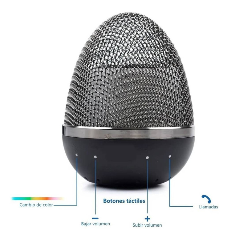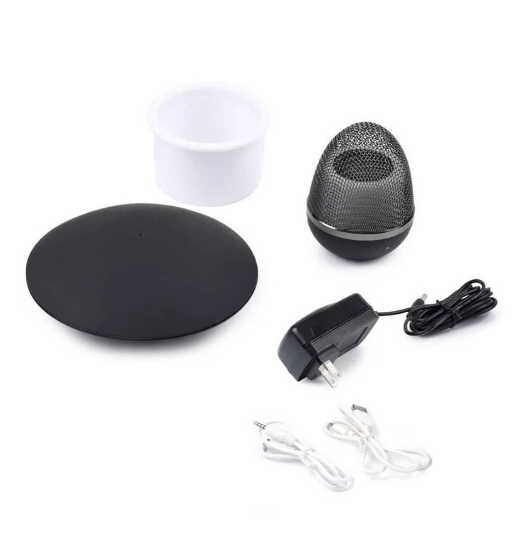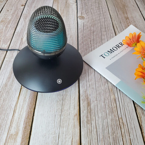 اسپیکر معلق بلوتوثی دارای یک پایه پلاستیکی مات با کیفیت و یک اسپیکر به شکل تخم مرغ بوده و دارای کیفیت صدای بسیار خوبی نیز میباشد.