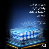 فن توربوجت کوچک دارای 2 باتری لیتیومی با ظرفیت 21700 x 2 داخلی است، ظرفیت باتری: 3000 میلی آمپر ساعت، با عمر باتری عالی که می تواند تا چهار ساعت (پایین ترین سطح) دوام بیاورد.