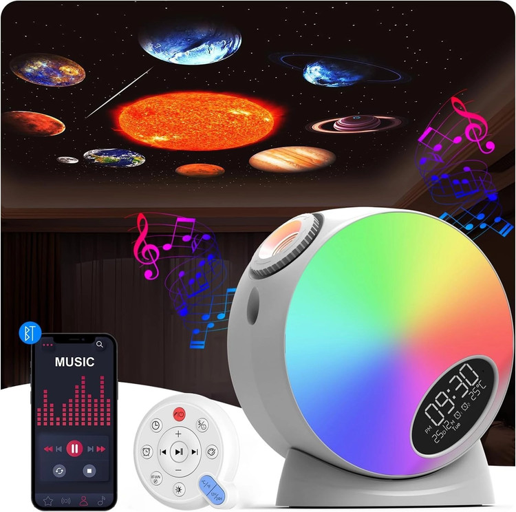 اين پروژکتور فراتر از يک چراغ خواب ساده است. با داشتن نمايش ساعت، آلارم، نمايش دما، نورهاي رنگي آرامش بخش، افکت ستاره دنباله دار و بلندگوي بلوتوث داخلي، همه نيازهاي يک اتاق مدرن و زيبا را در خود جاي داده است. کنترل از راه دور حرفه اي به شما اجازه مي دهد بدون نياز به جابجايي، تمام تنظيمات را به راحتي انجام دهيد.