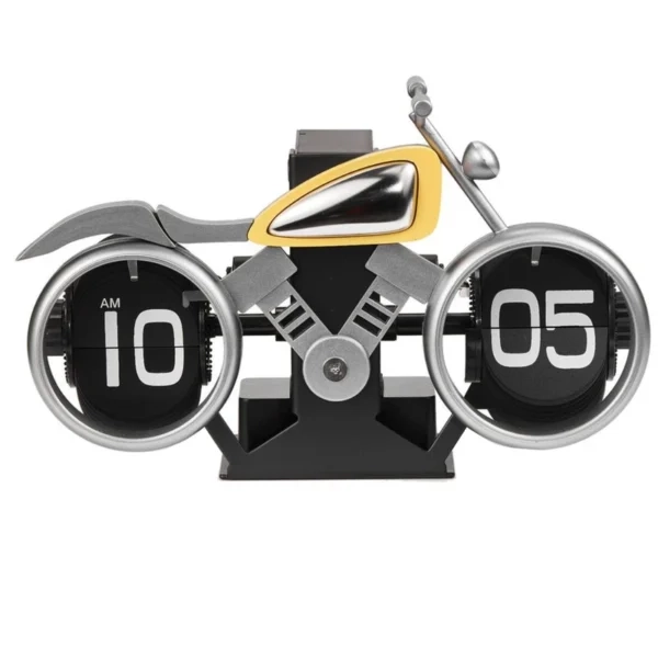 این ساعت فلیپ با طراحی خاص به شکل یک موتورسیکلت کلاسیک، جذابیت بینظیری به فضا میبخشد. جزئیات دقیق و کیفیت بالای ساخت، آن را به یک یادگاری بهیادماندنی برای دوستان و خانواده تبدیل میکند. -