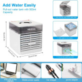 6- دستگاه قدرت چرخش باد و پخش ندارد و صرفاً بصورت مستقیم پرتاب باد دارد و از این نظر برای استفاده روی میز کار، چادرهای کوچک و فضاهای محدود مناسب است؛ همچنین در پاییز و زمستان با خشک شدن هوا، می توان برای مرطوب یا خنک نگه داشتن محیط گیاهان خانگی حساس از آن استفاده کرد. اگر کلا قصد استفاده از قابلیت خنک کنندگی ندارید، می توان در مخزن آن اکالیپتوس و مواد معطر ریخت تا فضا را خوشبو کند.
