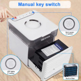 جنس بدنه آن از پلاستیک با کیفیت بدون بو می باشد و در قسمت بالایی این کولر آبی رومیزی مخزن آبی وجود دارد که می توانید در صورت نیاز آن را پر از آب کرده و از هوای خنک تری برخوردار شوید.
