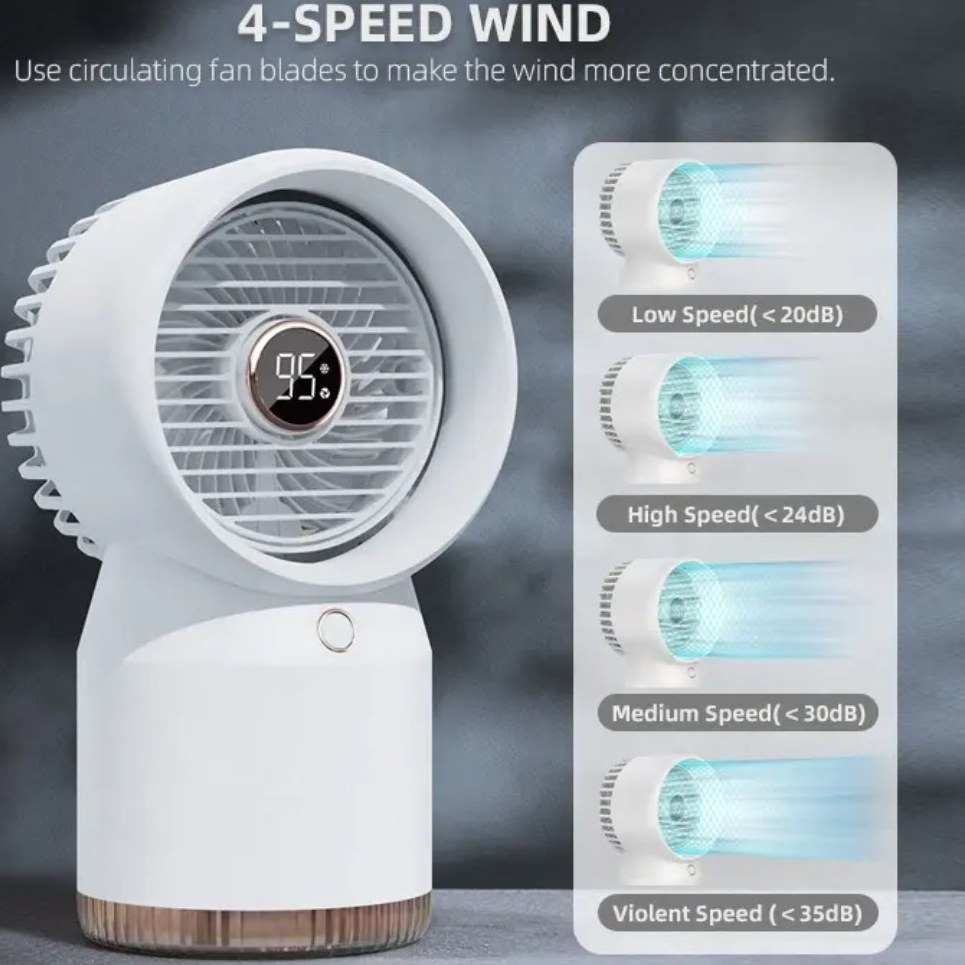 1- حالت سرعت فن: پنکه شارژی رو میزی مه پاش مدل LSL09 دارای چهار حالت سرعت مختلف (معمولاً کم، متوسط، زیاد و توربو) است. این تنوع در سرعت، به شما امکان میدهد تا شدت باد را متناسب با نیاز خود تنظیم کنید. مثلاً در حالت کم، برای محیطهای آرام و در حالت زیاد برای خنکسازی سریعتر مناسب است.