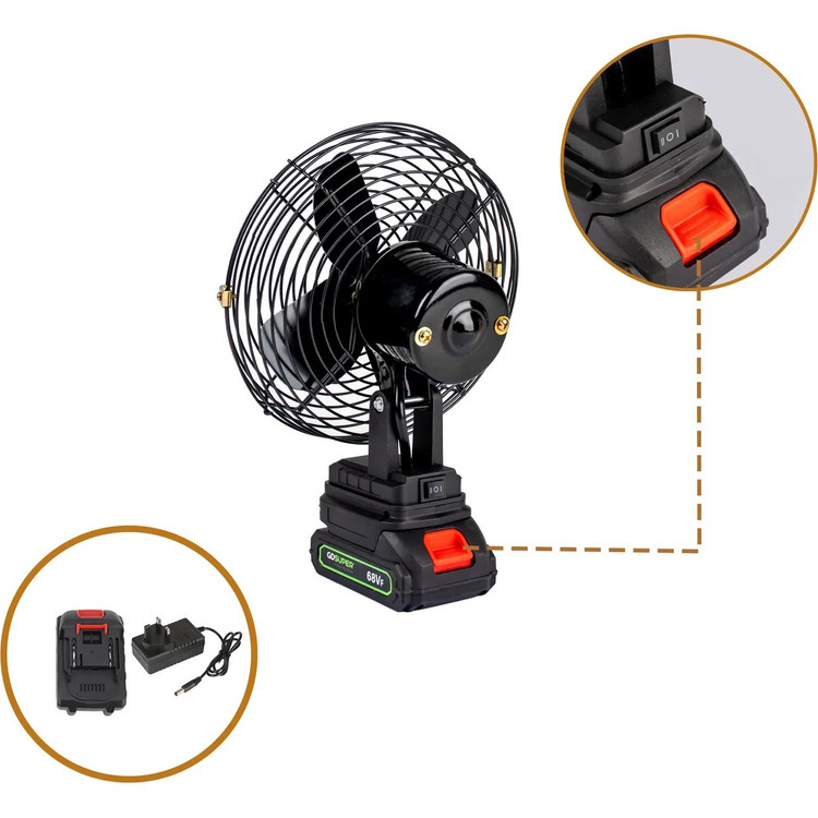 باتری قابل شارژ لیتیومی: با باتری لیتیومی داخلی و قابلیت شارژ از طریق پورت USB، این پنکه تا ۳ الی ۵ ساعت شارژدهی دارد.