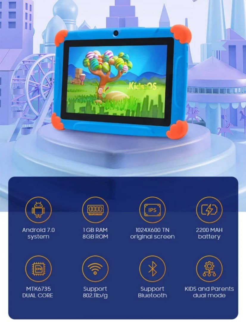 همچنین این تبلت با صفحه نمایش لمسی ۷ اینچی با لمس چندکاره، کارکردن برای کودک شما را آسان می کند.
