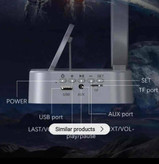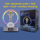 - دارای : ساعت زنگ دار / فضانورد معلق مغناطیسی / نور RGB / بلوتوث / شارژ بیسیم / کابل AUX / رادیو TWS / پشتیبانی از USB