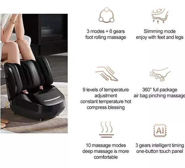 کیسههای هوای واقع شده در اطراف ساق، مچ و روی پا و غلتک های موجود در کف پا به همراه سیستم گرمایشی، ماساژ بدون نقص را انجام میدهند.