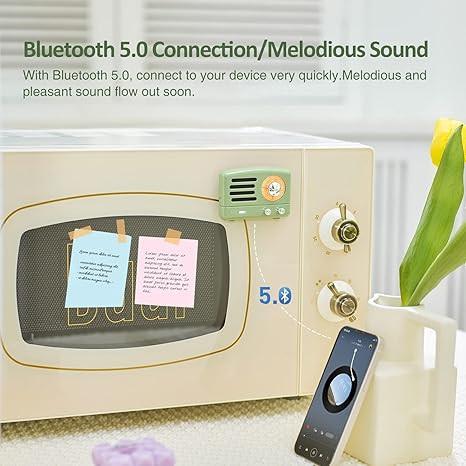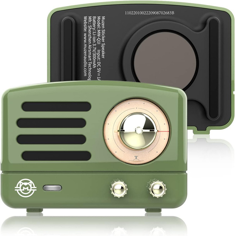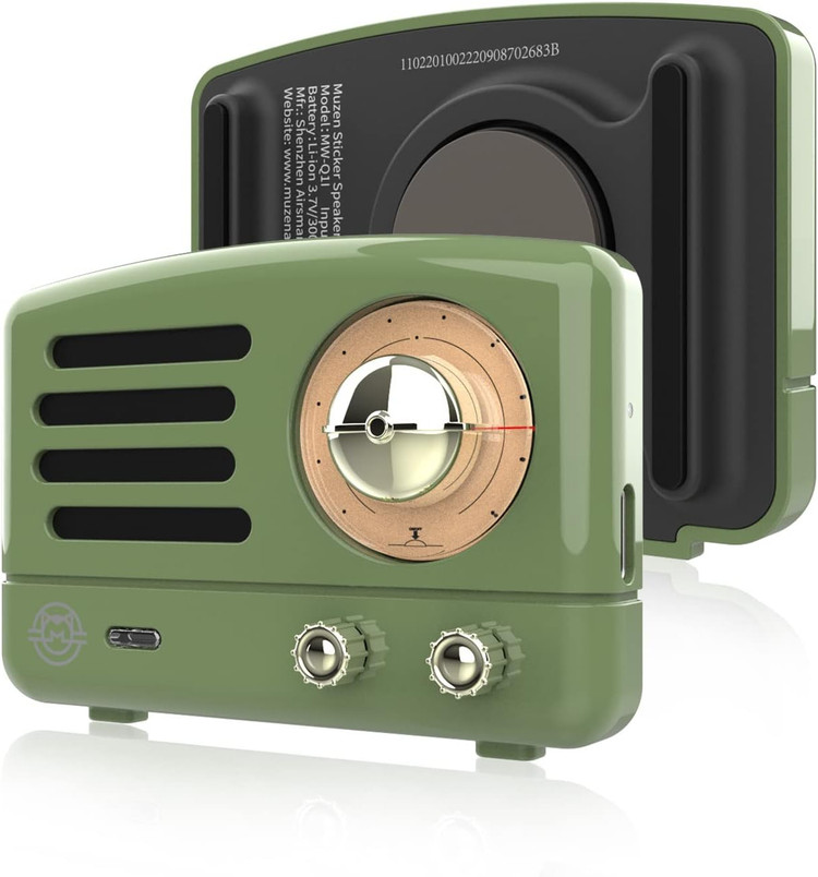 طراحی نوستالژیک قدیمی : این اسپیکر کوچک زیبا دارای سبک رادیوهای قدیمی، صدای بوق کد مورس، صفحه نورانی و برچسبهای یخچال است که توسط کلکسیونرها "آهنرباهای حافظه" نامیده میشوند.