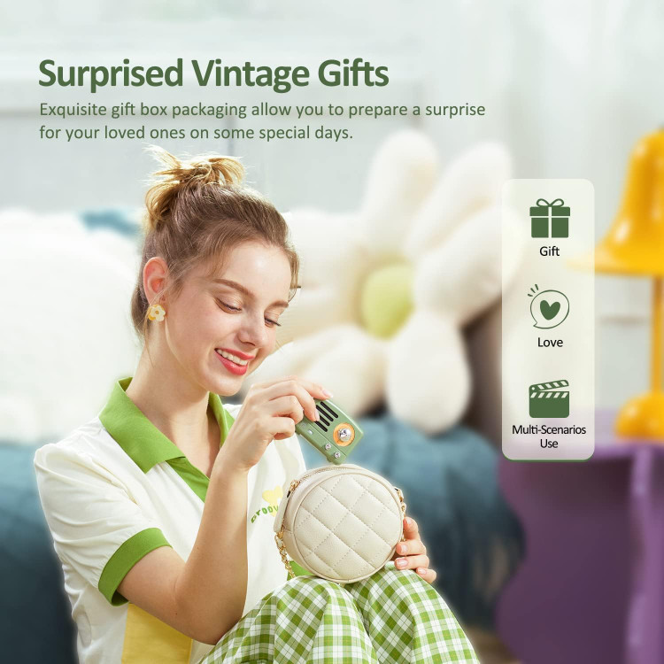 دارای ظاهری نوستالژی و نفیس ، طراحی قابل حمل واستفاده آسان باعث شده تا این بلندگوی زیبا اولین انتخاب به عنوان هدیه ای خاص برای انتخاب شما باشد .