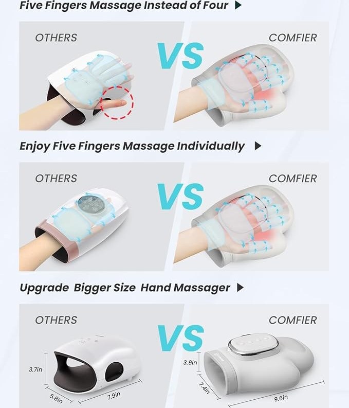 دردهای مفصلی یا عضلانی دست اذیتت میکنه یا حتی وضعیت کاریت طوری هست که ساعت های زیادی از دستت کار میکشی حتما به فکر خرید یکی از این ماساژورها باش ،توی طراحیش کاملا آناتومی دستو رعایت کردن و مثل یه دستکش هست با ایربگ هایی که داخلش داره فشارهای ممتدی به دست وارد می کنه و باعث رفع خستگی میشه علاوه بر اون با گرمایشی که تولید میکنه یه حس خوب در دست ها ایجاد میکنه