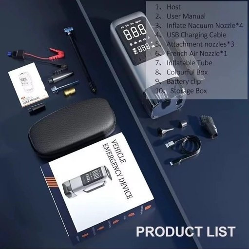 جامپ استارتر مدل ATJ-9366-B یک دستگاه همهکاره برای رانندگان حرفهای است که ترکیبی از پمپ باد قوی، استارتر خودرو، پاوربانک و جاروبرقی قابل حمل را در یک بدنهی فشرده و مقاوم ارائه میدهد.